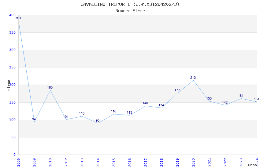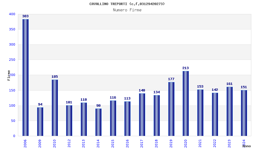 | Anno | Firme | Importi | Media | Naz. | Reg. | Prov. | Comu. |