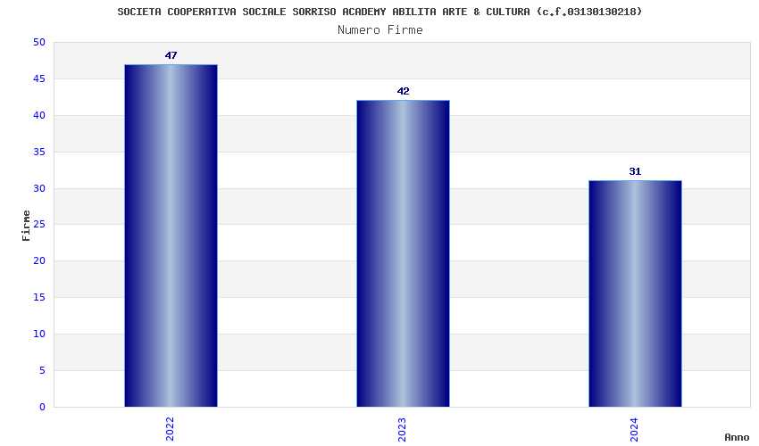 | Anno | Firme | Importi | Media | Naz. | Reg. | Prov. | Comu. |