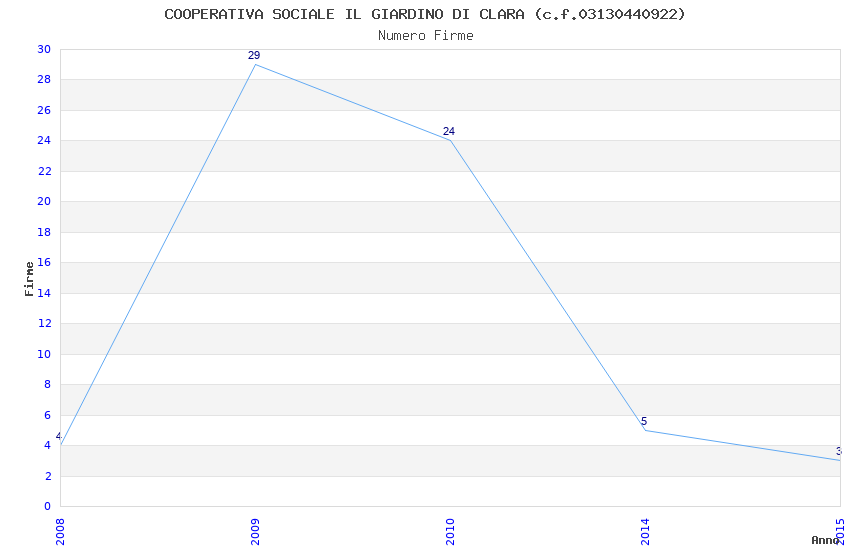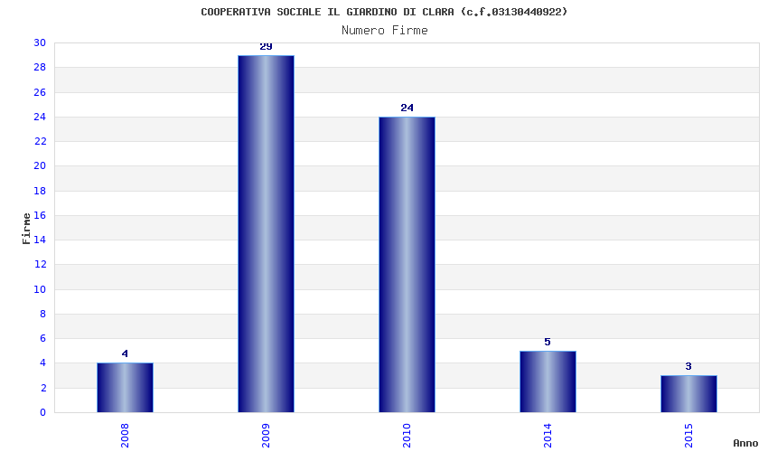 | Anno | Firme | Importi | Media | Naz. | Reg. | Prov. | Comu. |