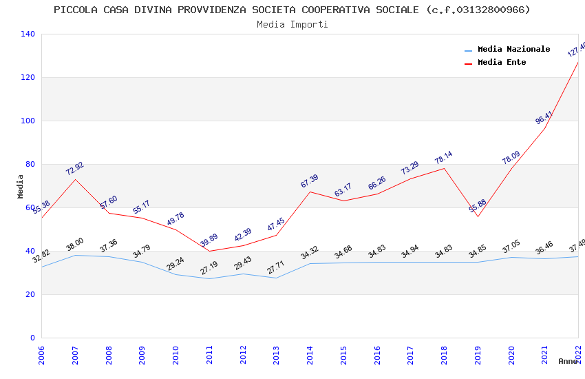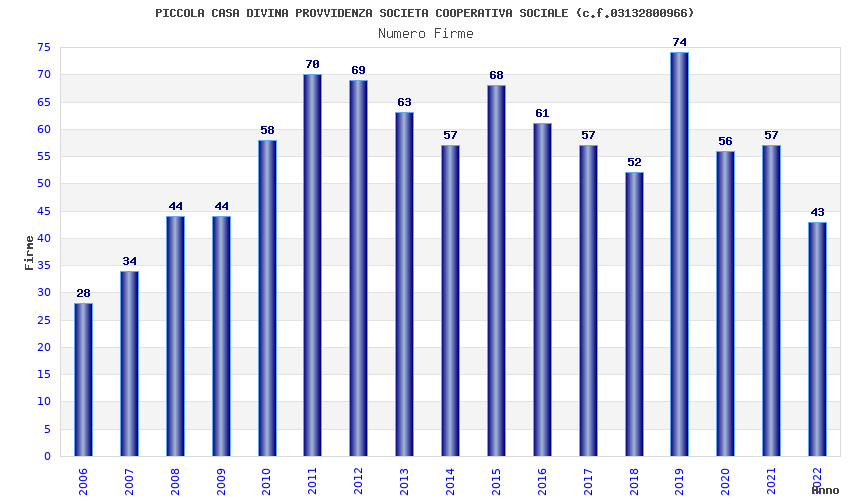| Anno | Firme | Importi | Media | Naz. | Reg. | Prov. | Comu. |