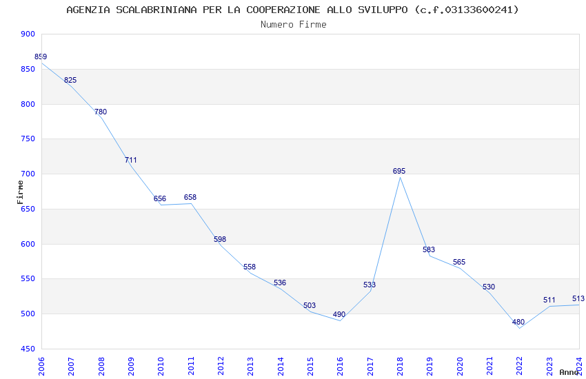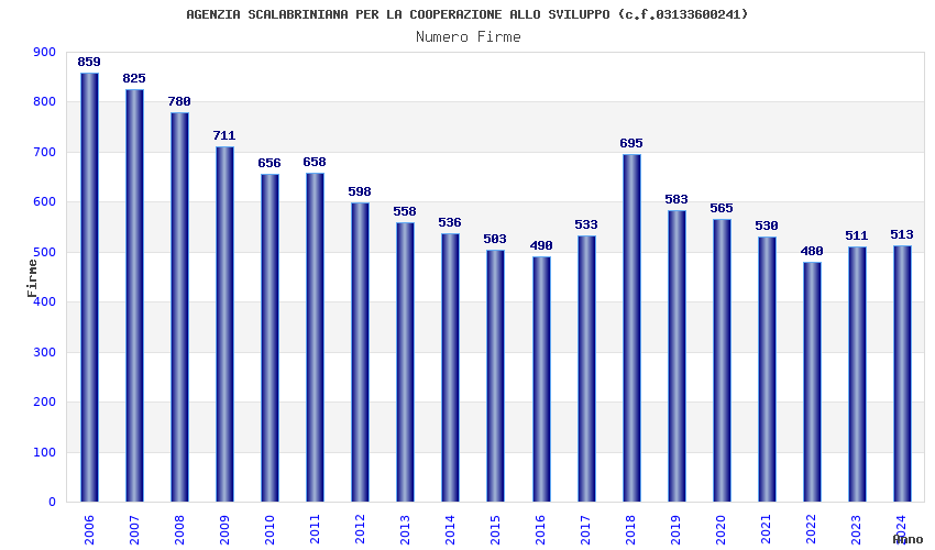 | Anno | Firme | Importi | Media | Naz. | Reg. | Prov. | Comu. |