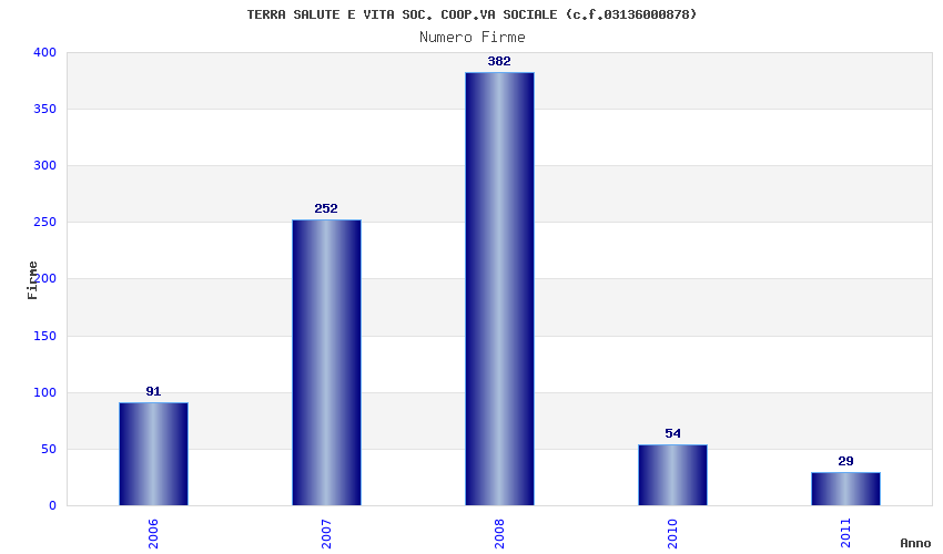 | Anno | Firme | Importi | Media | Naz. | Reg. | Prov. | Comu. |