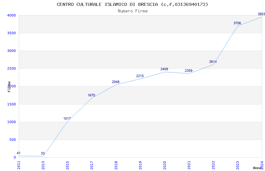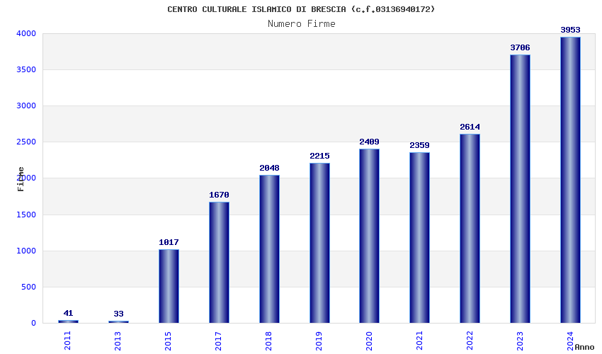 | Anno | Firme | Importi | Media | Naz. | Reg. | Prov. | Comu. |