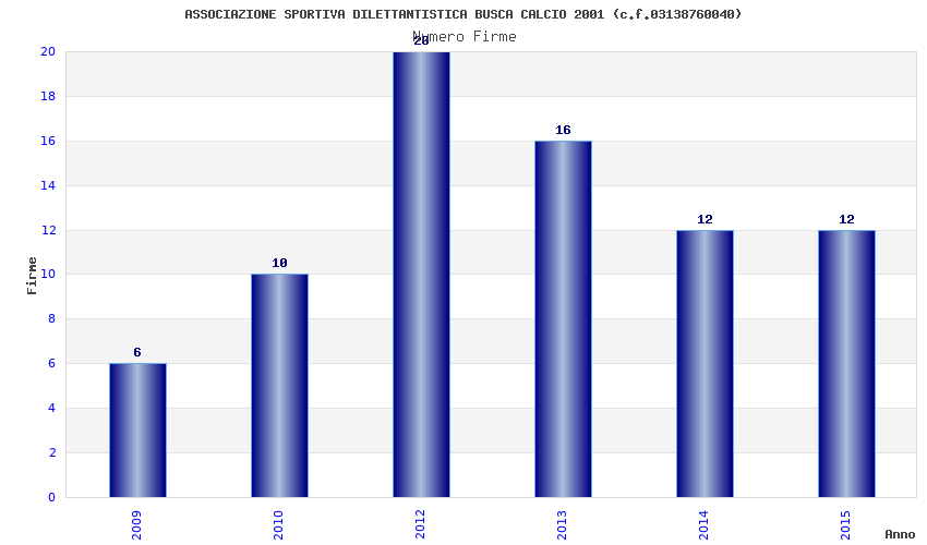| Anno | Firme | Importi | Media | Naz. | Reg. | Prov. | Comu. |