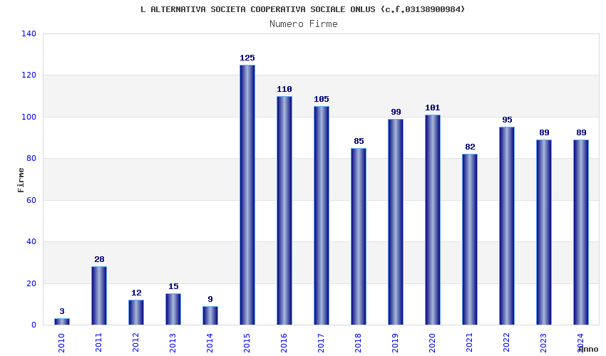 | Anno | Firme | Importi | Media | Naz. | Reg. | Prov. | Comu. |