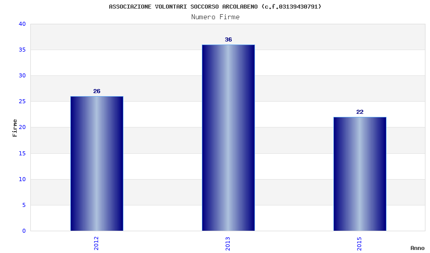 | Anno | Firme | Importi | Media | Naz. | Reg. | Prov. | Comu. |