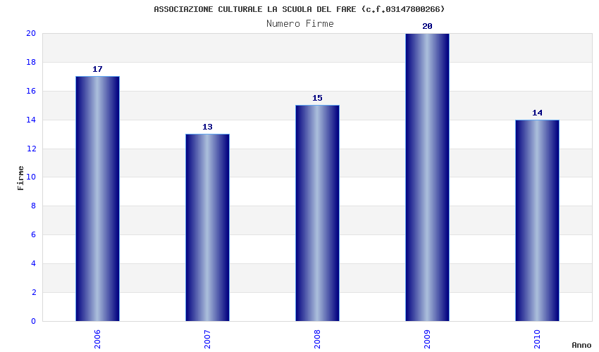 | Anno | Firme | Importi | Media | Naz. | Reg. | Prov. | Comu. |
