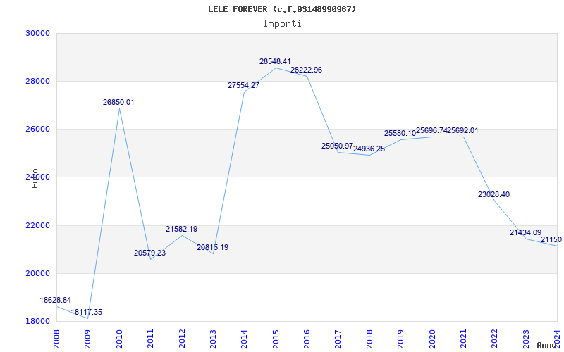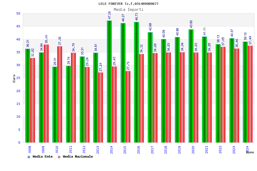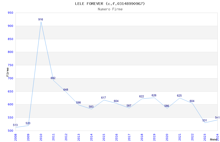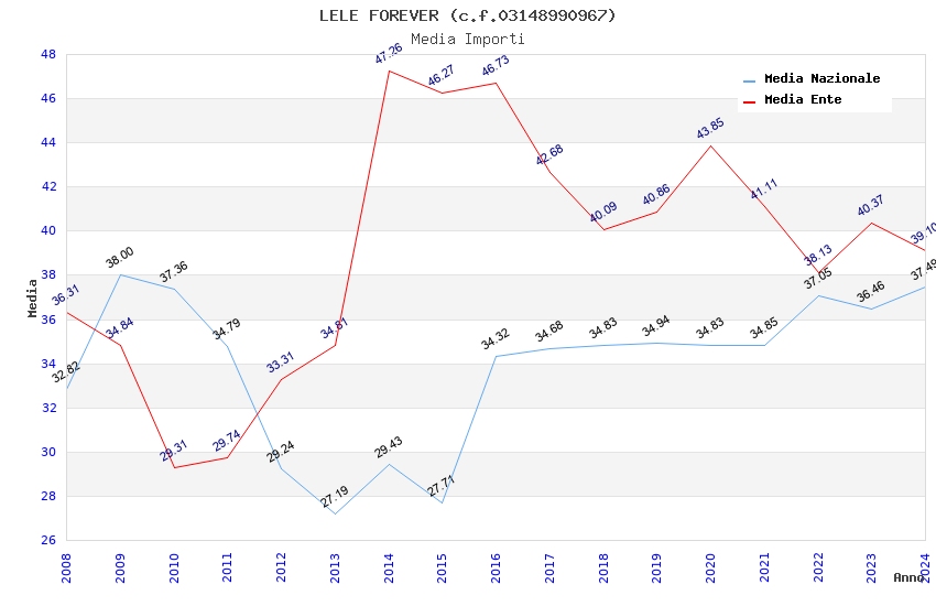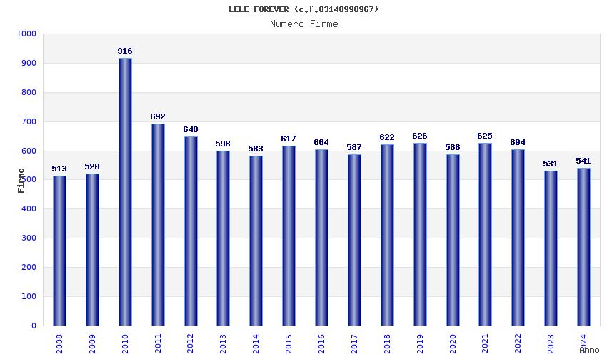 | Anno | Firme | Importi | Media | Naz. | Reg. | Prov. | Comu. |