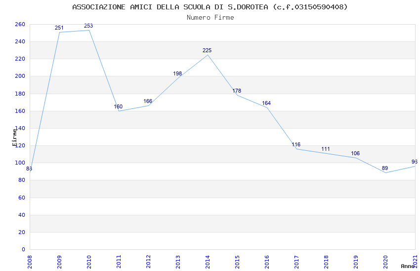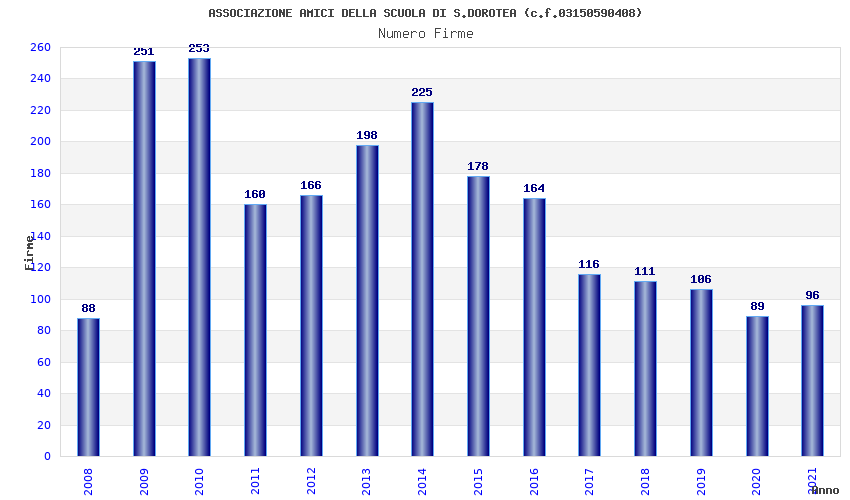 | Anno | Firme | Importi | Media | Naz. | Reg. | Prov. | Comu. |