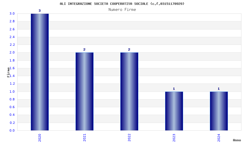 | Anno | Firme | Importi | Media | Naz. | Reg. | Prov. | Comu. |