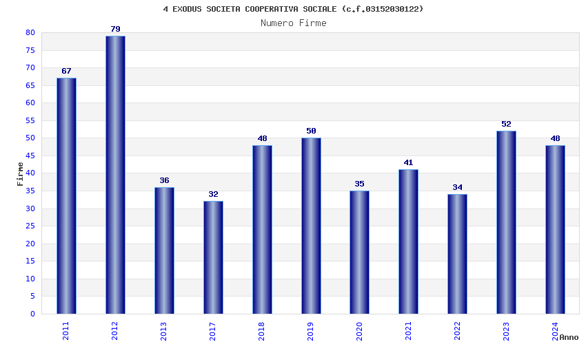 | Anno | Firme | Importi | Media | Naz. | Reg. | Prov. | Comu. |