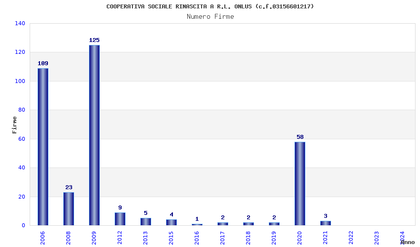 | Anno | Firme | Importi | Media | Naz. | Reg. | Prov. | Comu. |