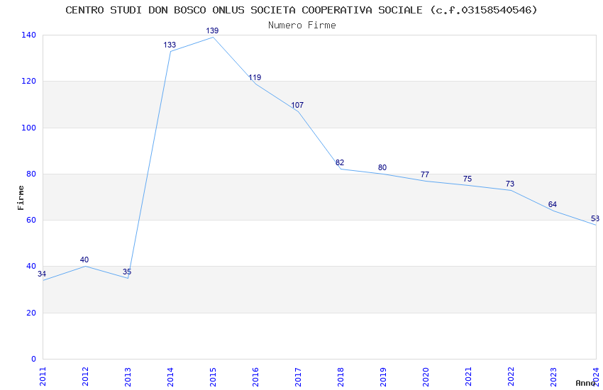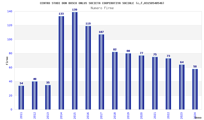 | 2015 | 139 | 8.693,71 | 62,54 | 5.903 | 76 | 59 | 22 |