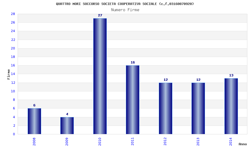 | Anno | Firme | Importi | Media | Naz. | Reg. | Prov. | Comu. |