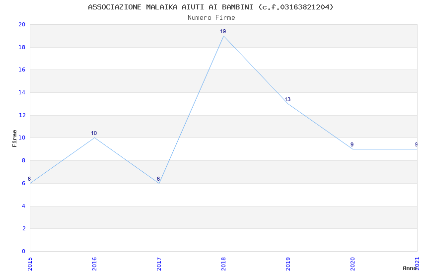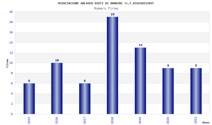 | Anno | Firme | Importi | Media | Naz. | Reg. | Prov. | Comu. |