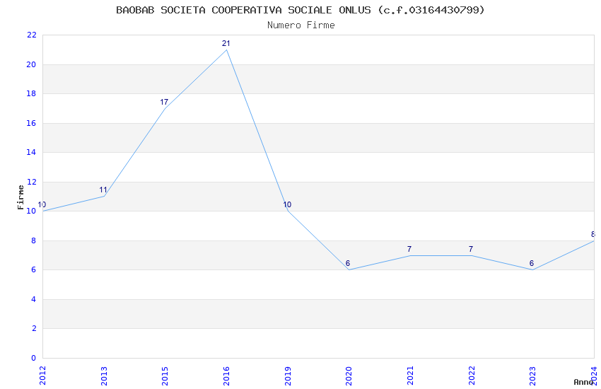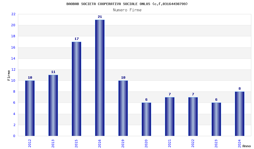 | Anno | Firme | Importi | Media | Naz. | Reg. | Prov. | Comu. |