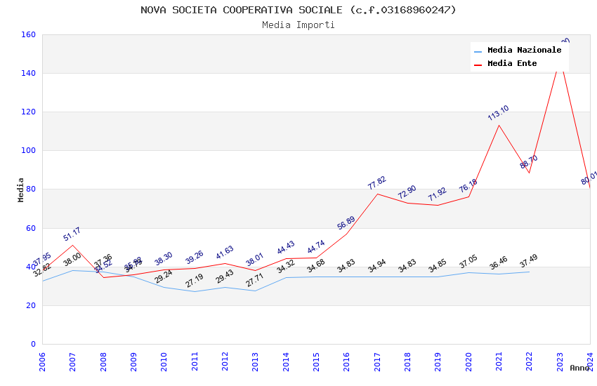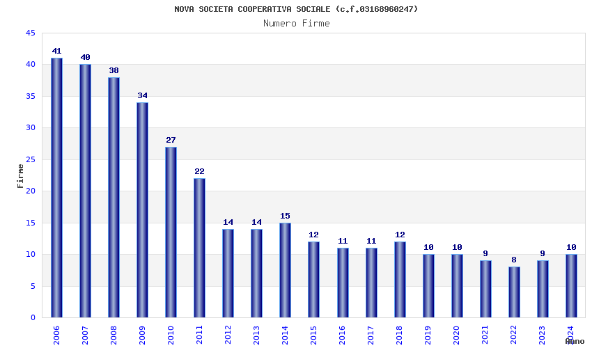| Anno | Firme | Importi | Media | Naz. | Reg. | Prov. | Comu. |