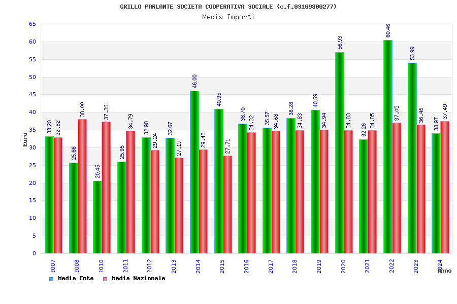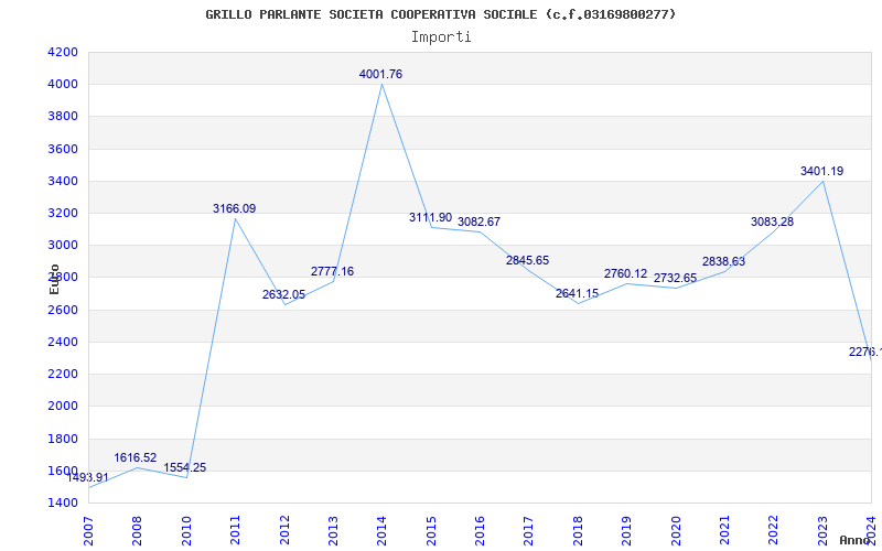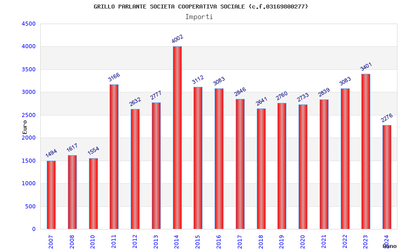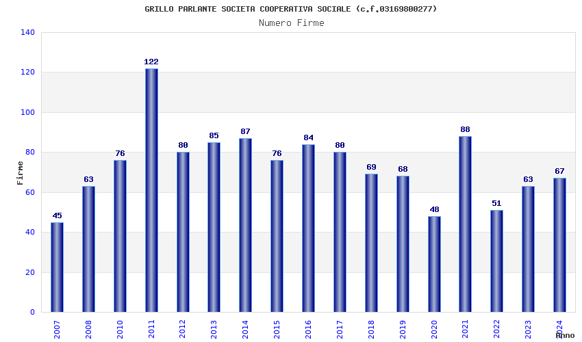 | Anno | Firme | Importi | Media | Naz. | Reg. | Prov. | Comu. |