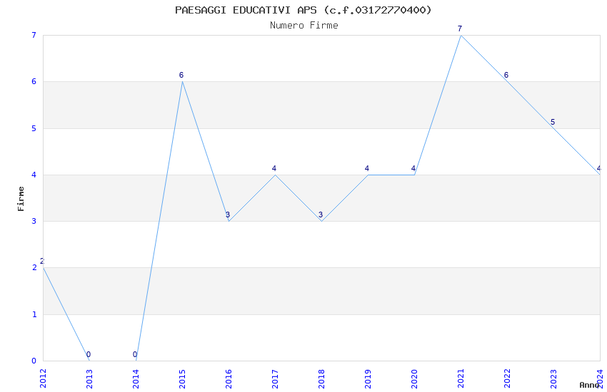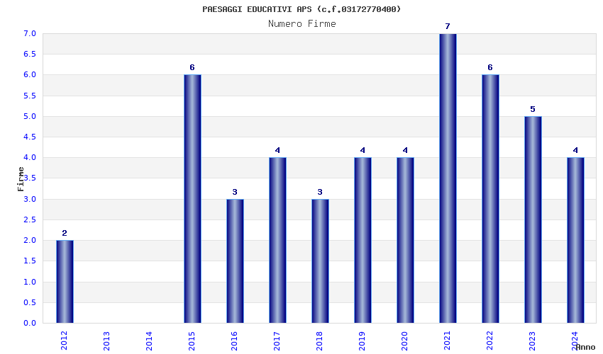 | Anno | Firme | Importi | Media | Naz. | Reg. | Prov. | Comu. |