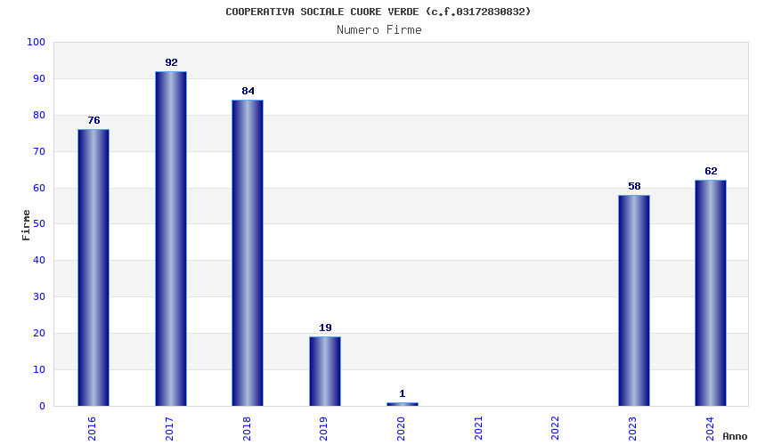 | Anno | Firme | Importi | Media | Naz. | Reg. | Prov. | Comu. |