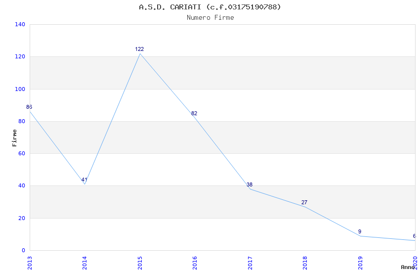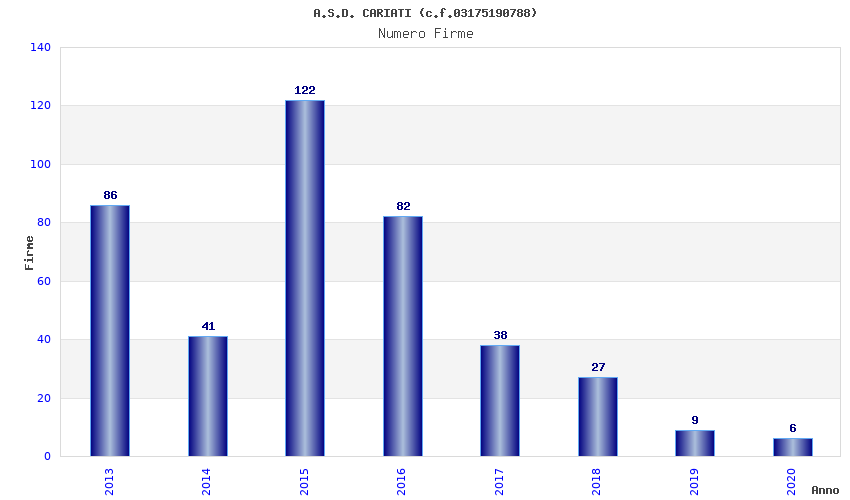 | Anno | Firme | Importi | Media | Naz. | Reg. | Prov. | Comu. |
