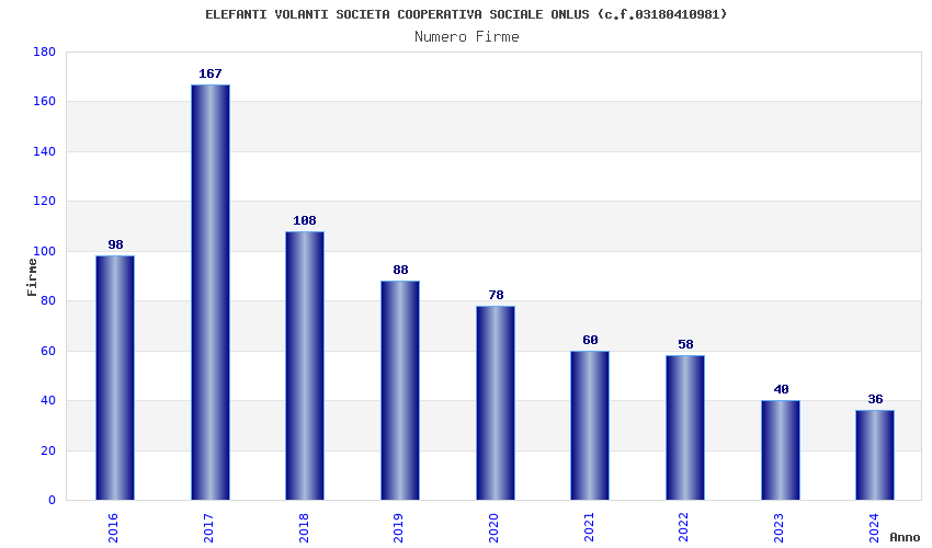 | Anno | Firme | Importi | Media | Naz. | Reg. | Prov. | Comu. |