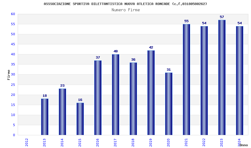 | Anno | Firme | Importi | Media | Naz. | Reg. | Prov. | Comu. |