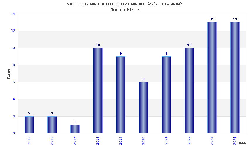 | Anno | Firme | Importi | Media | Naz. | Reg. | Prov. | Comu. |