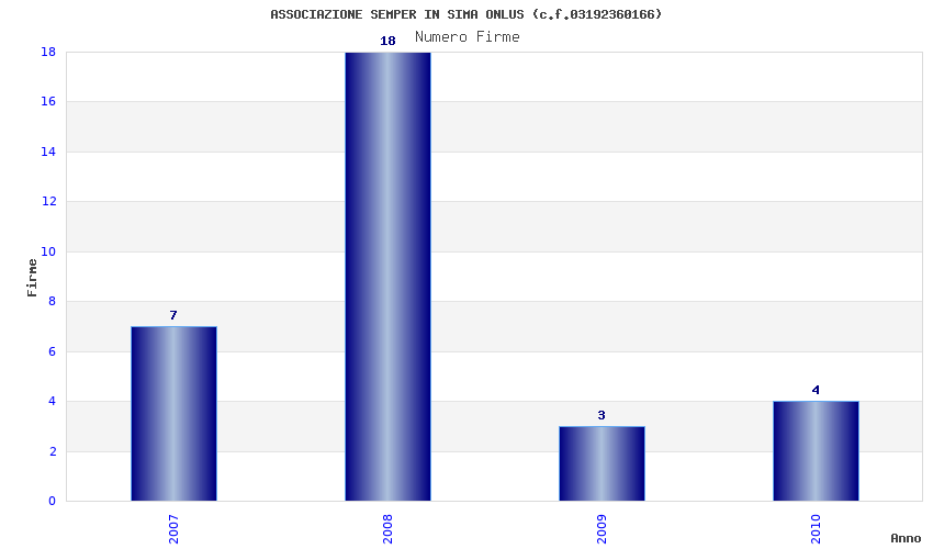 | Anno | Firme | Importi | Media | Naz. | Reg. | Prov. | Comu. |