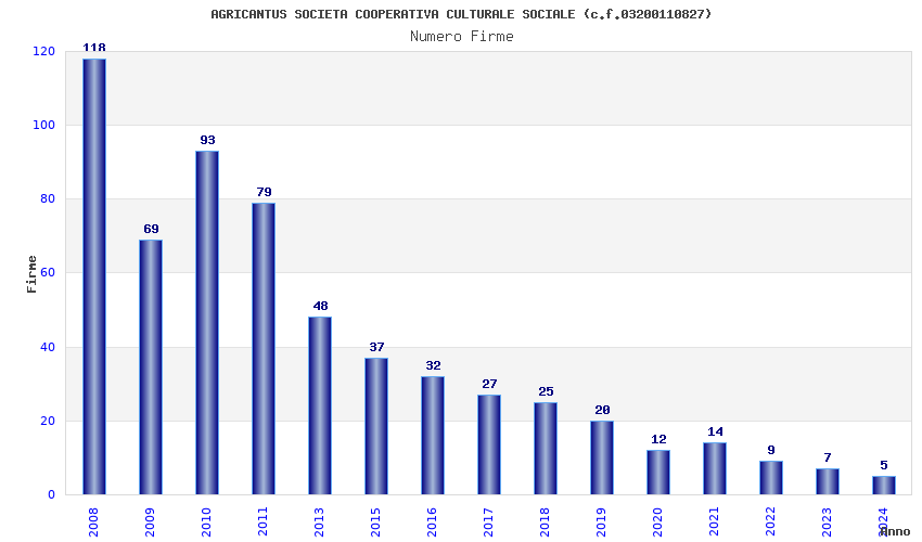 | Anno | Firme | Importi | Media | Naz. | Reg. | Prov. | Comu. |