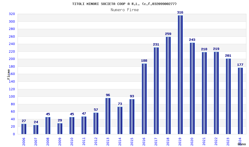 | Anno | Firme | Importi | Media | Naz. | Reg. | Prov. | Comu. |