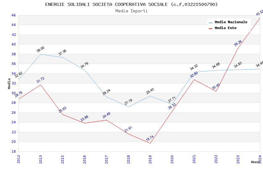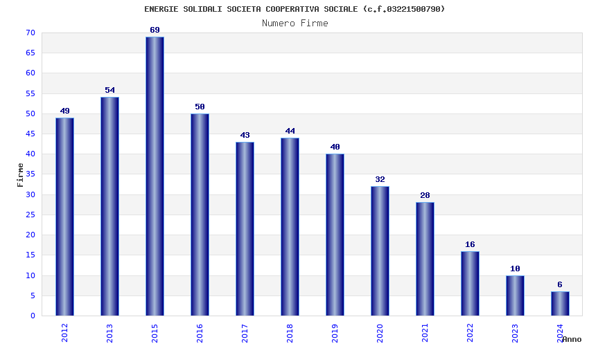 | Anno | Firme | Importi | Media | Naz. | Reg. | Prov. | Comu. |