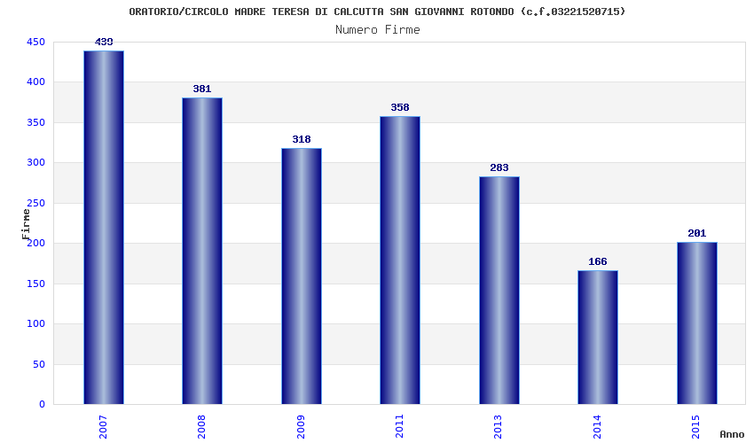 | Anno | Firme | Importi | Media | Naz. | Reg. | Prov. | Comu. |
