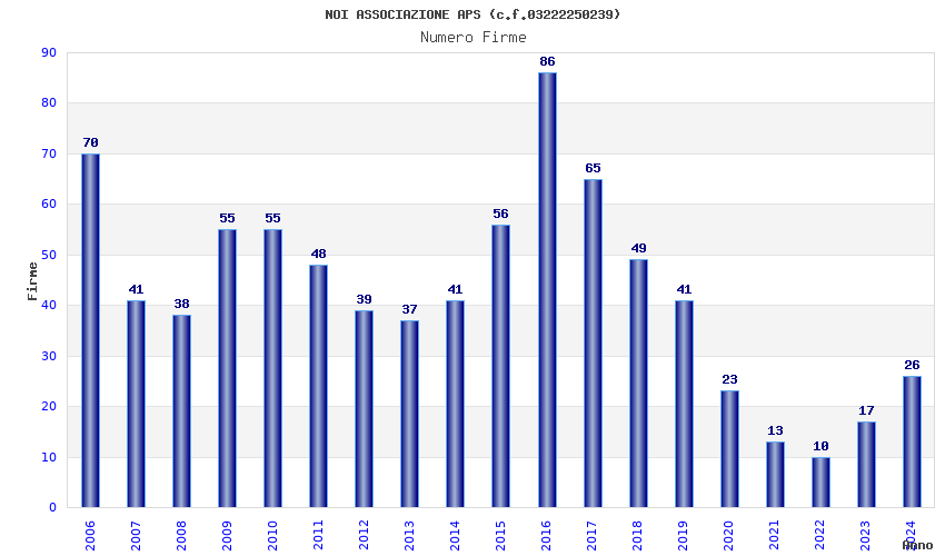 | Anno | Firme | Importi | Media | Naz. | Reg. | Prov. | Comu. |