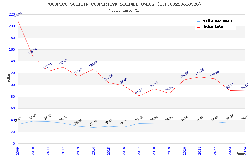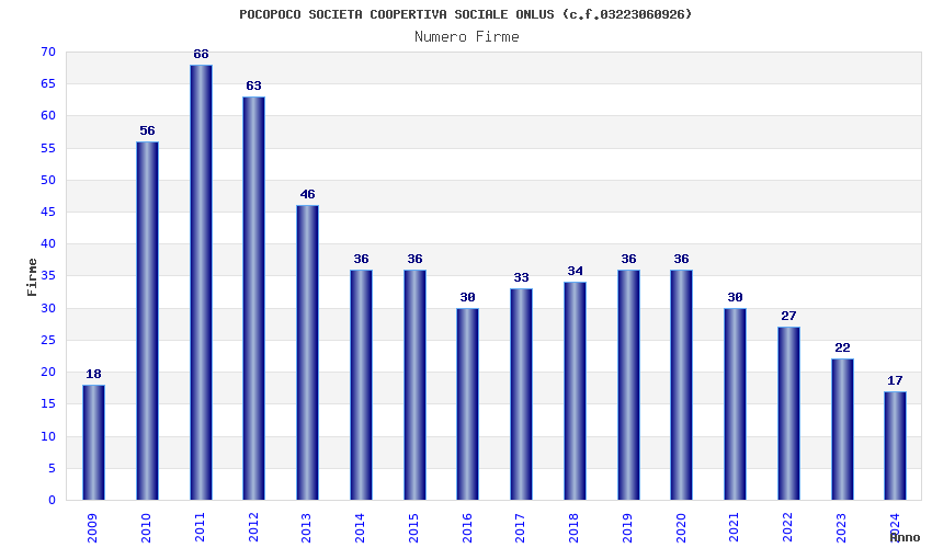 | Anno | Firme | Importi | Media | Naz. | Reg. | Prov. | Comu. |
