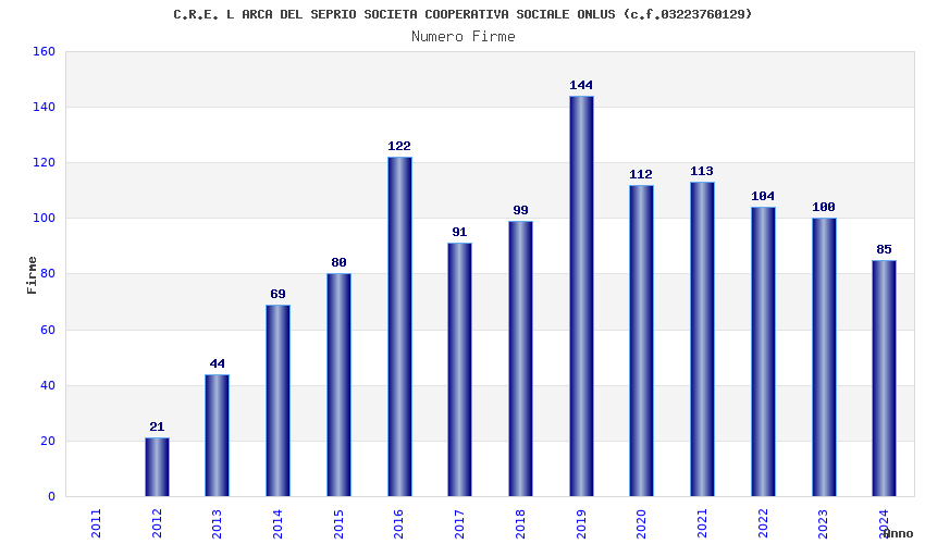 | 2019 | 144 | 5.864,52 | 40,73 | 9.483 | 2.248 | 170 | 1 |
