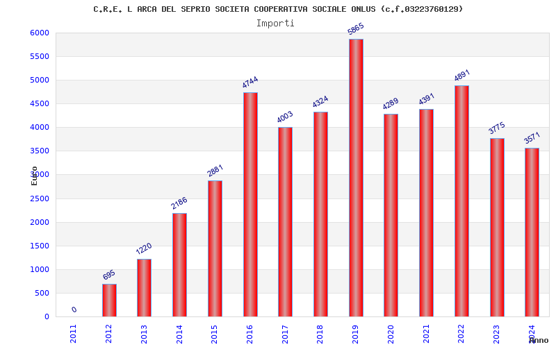 | Anno | Firme | Importi | Media | Naz. | Reg. | Prov. | Comu. |