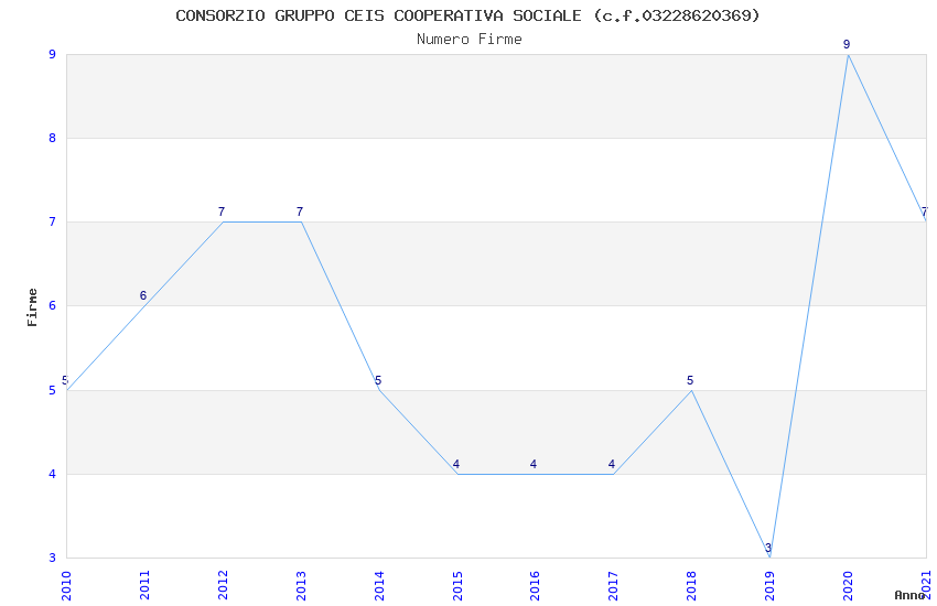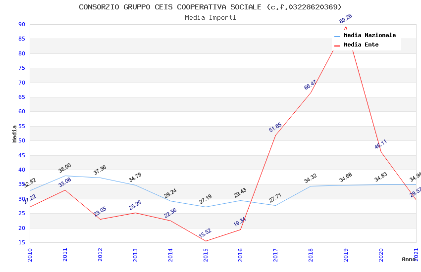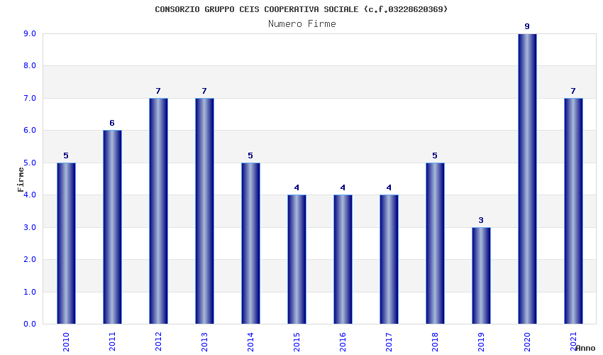 | Anno | Firme | Importi | Media | Naz. | Reg. | Prov. | Comu. |