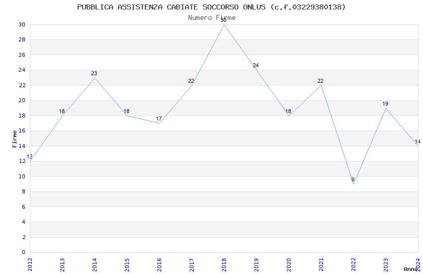 | Anno | Firme | Importi | Media | Naz. | Reg. | Prov. | Comu. |