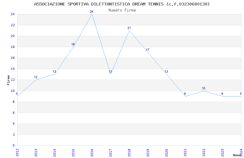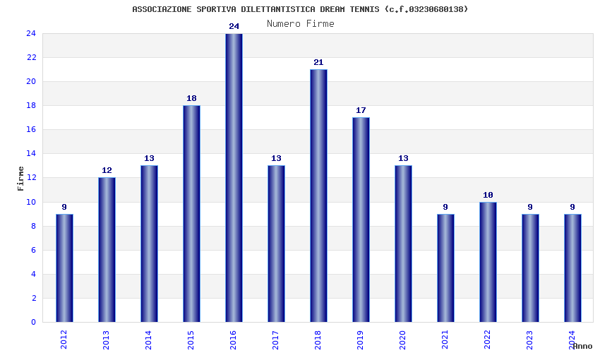 | 2017 | 13 | 422,83 | 32,53 | 45.935 | 9.525 | 566 | 38 |