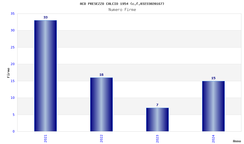| Anno | Firme | Importi | Media | Naz. | Reg. | Prov. | Comu. |