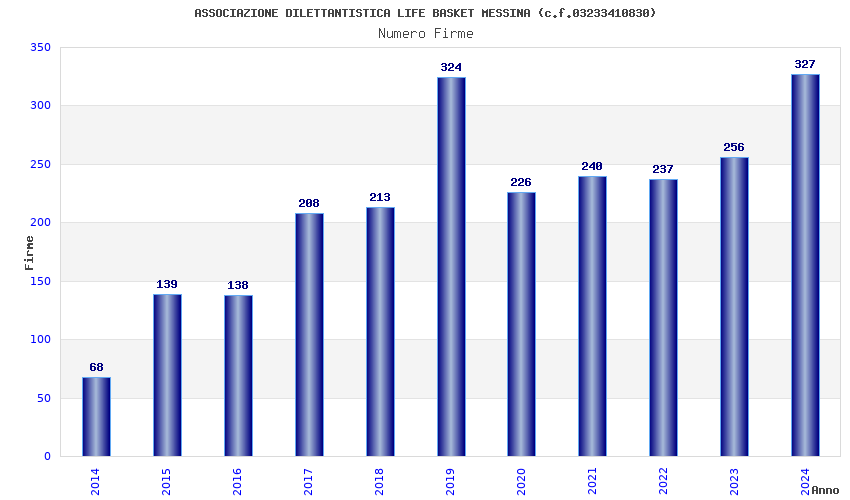 | Anno | Firme | Importi | Media | Naz. | Reg. | Prov. | Comu. |