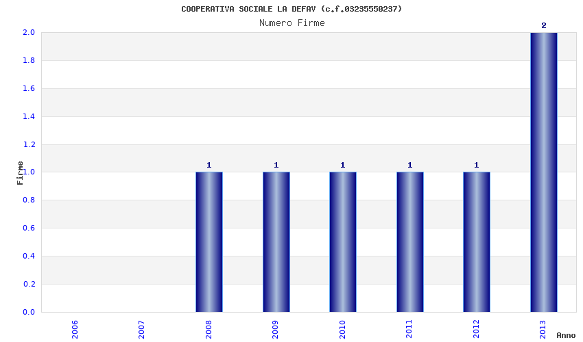 | Anno | Firme | Importi | Media | Naz. | Reg. | Prov. | Comu. |