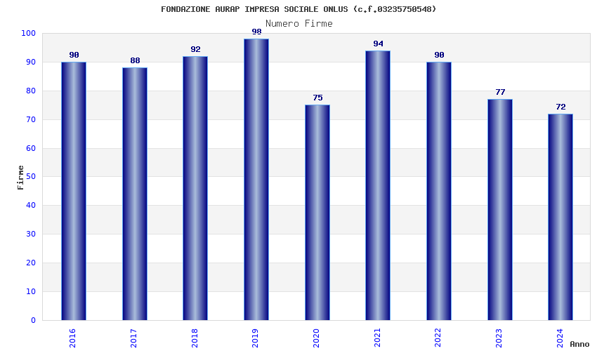 | Anno | Firme | Importi | Media | Naz. | Reg. | Prov. | Comu. |