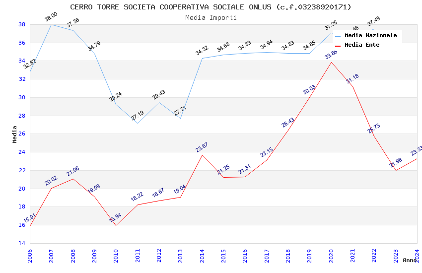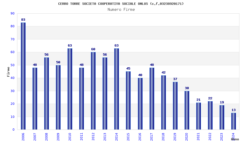 | Anno | Firme | Importi | Media | Naz. | Reg. | Prov. | Comu. |