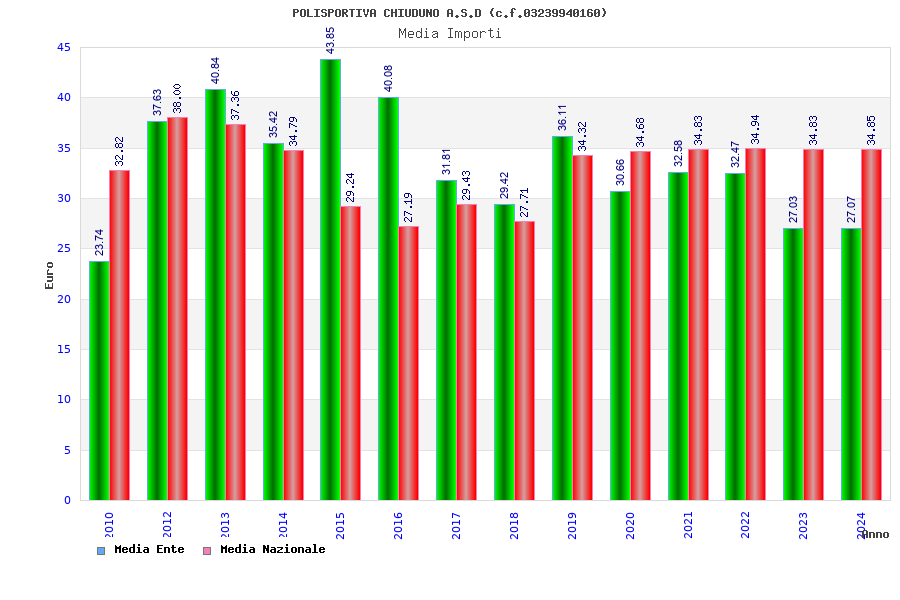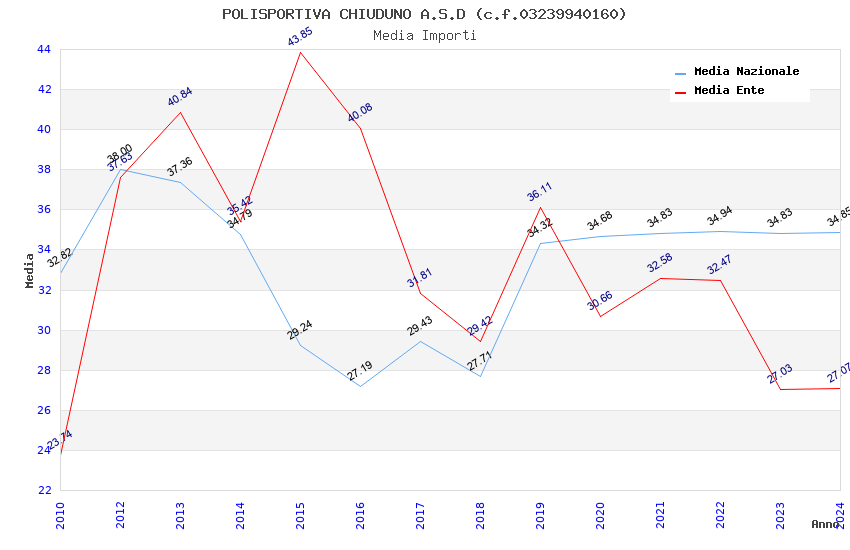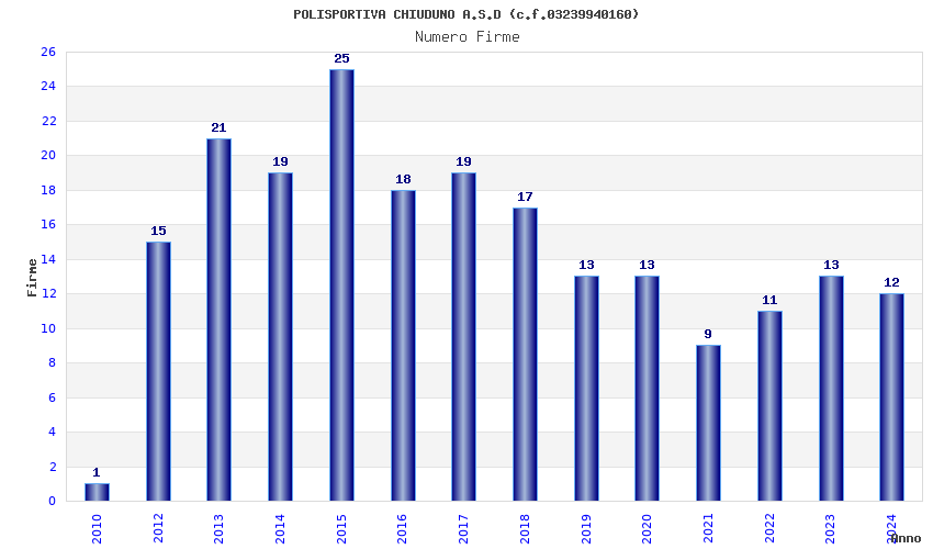 | Anno | Firme | Importi | Media | Naz. | Reg. | Prov. | Comu. |