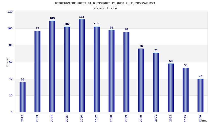 | Anno | Firme | Importi | Media | Naz. | Reg. | Prov. | Comu. |