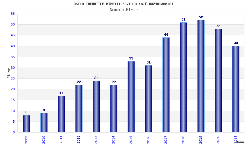 | Anno | Firme | Importi | Media | Naz. | Reg. | Prov. | Comu. |