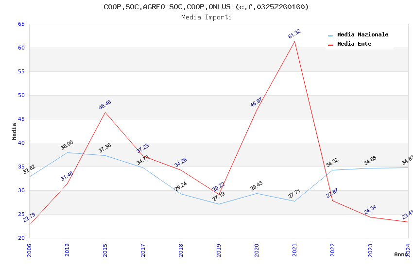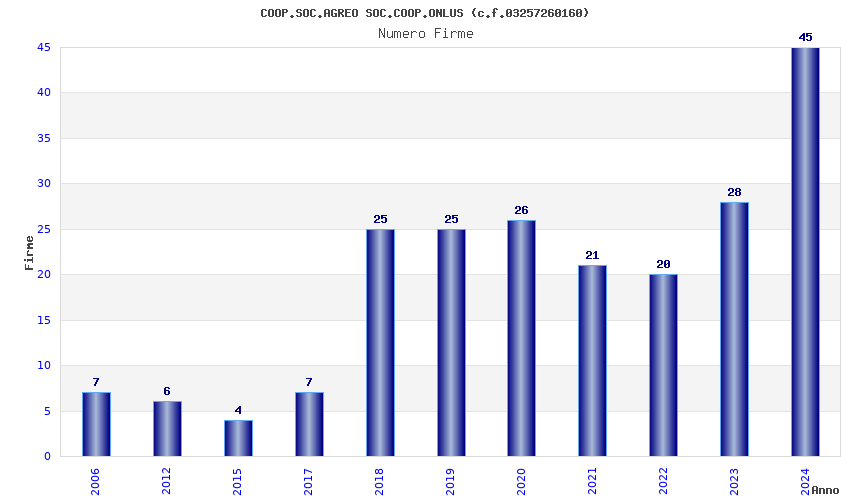 | Anno | Firme | Importi | Media | Naz. | Reg. | Prov. | Comu. |