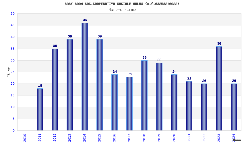 | Anno | Firme | Importi | Media | Naz. | Reg. | Prov. | Comu. |